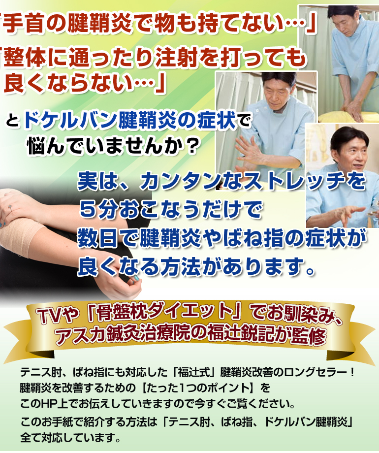 「福辻式腱鞘炎プログラム」 での内容に加えて、