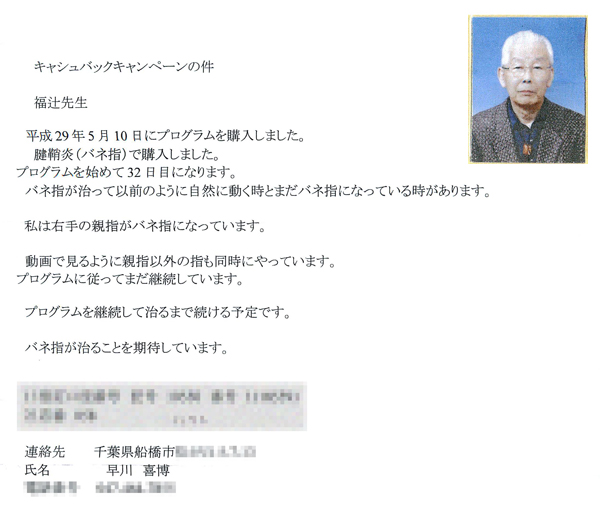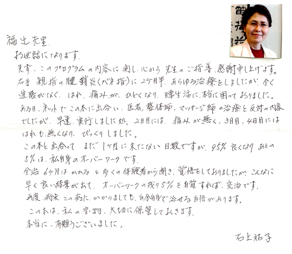 「福辻式腱鞘炎プログラム」 の感想です。